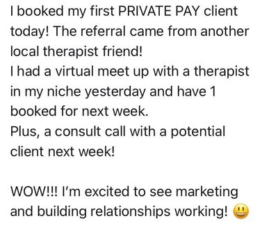 Our private community is filled with other like-minded therapists who are here to cheer you on and give feedback when you need it.