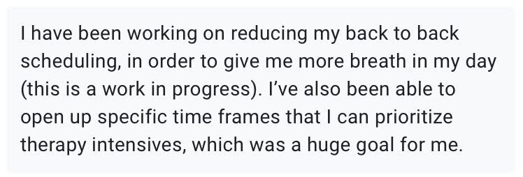 I started building my practice in November of last year. I joined the Lab in January and started seeing clients in February of this year and by the middle of May, my caseload was already almost full. By June, I had my first $10k month with mostly private pay clients!"